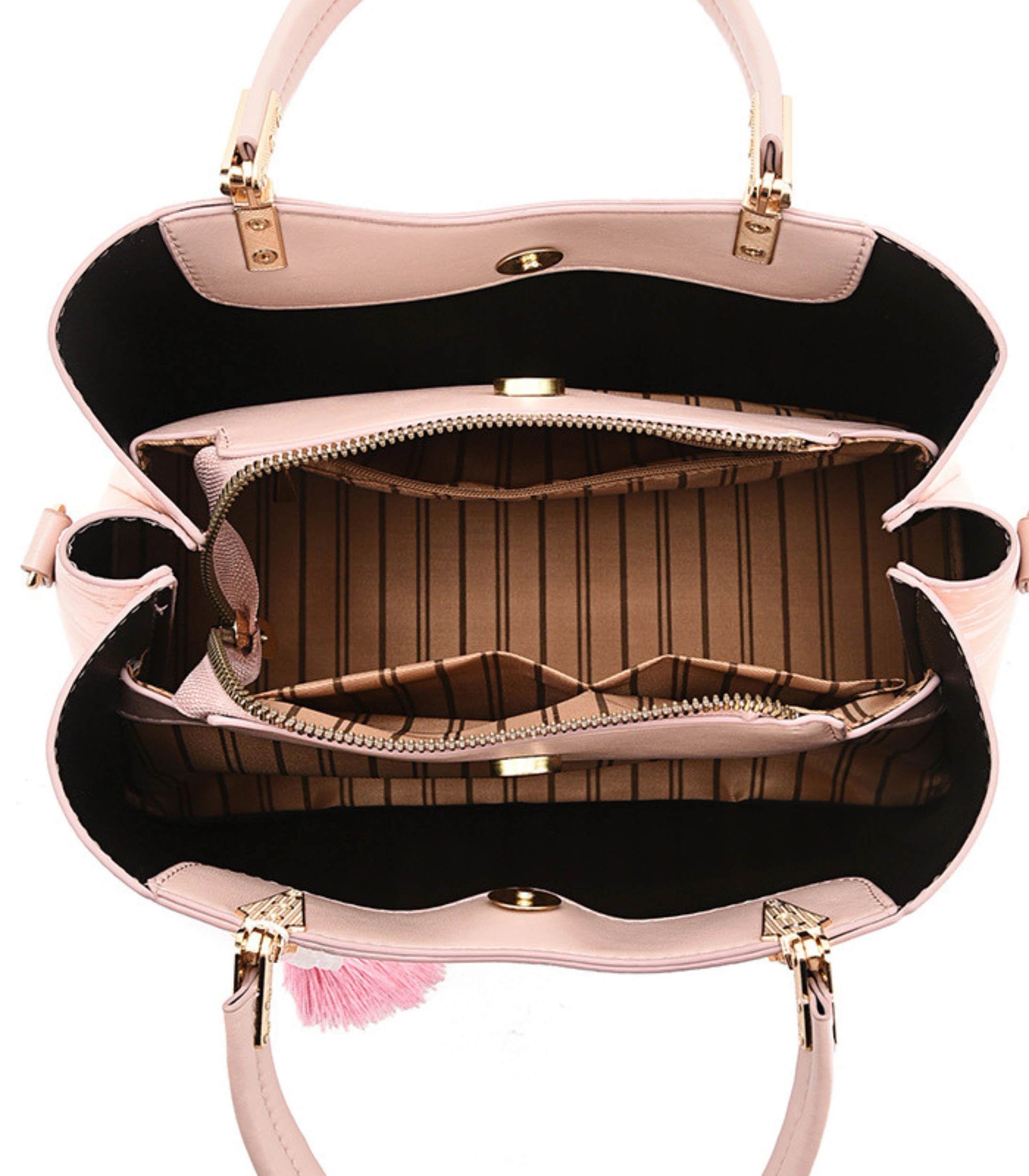 - Details: Adorned with a fashionable tassel charm and finished with gold-tone hardware and contrasting leather trim accents.