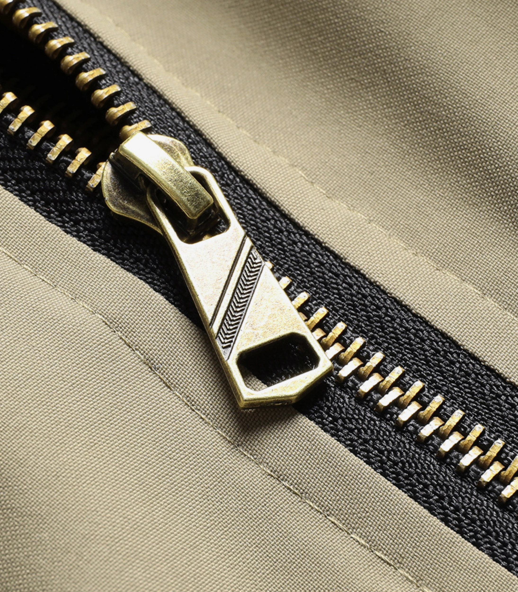 - Details: Classic bomber silhouette with ribbed cuffs and hem, and a robust brass-tone zipper pull.